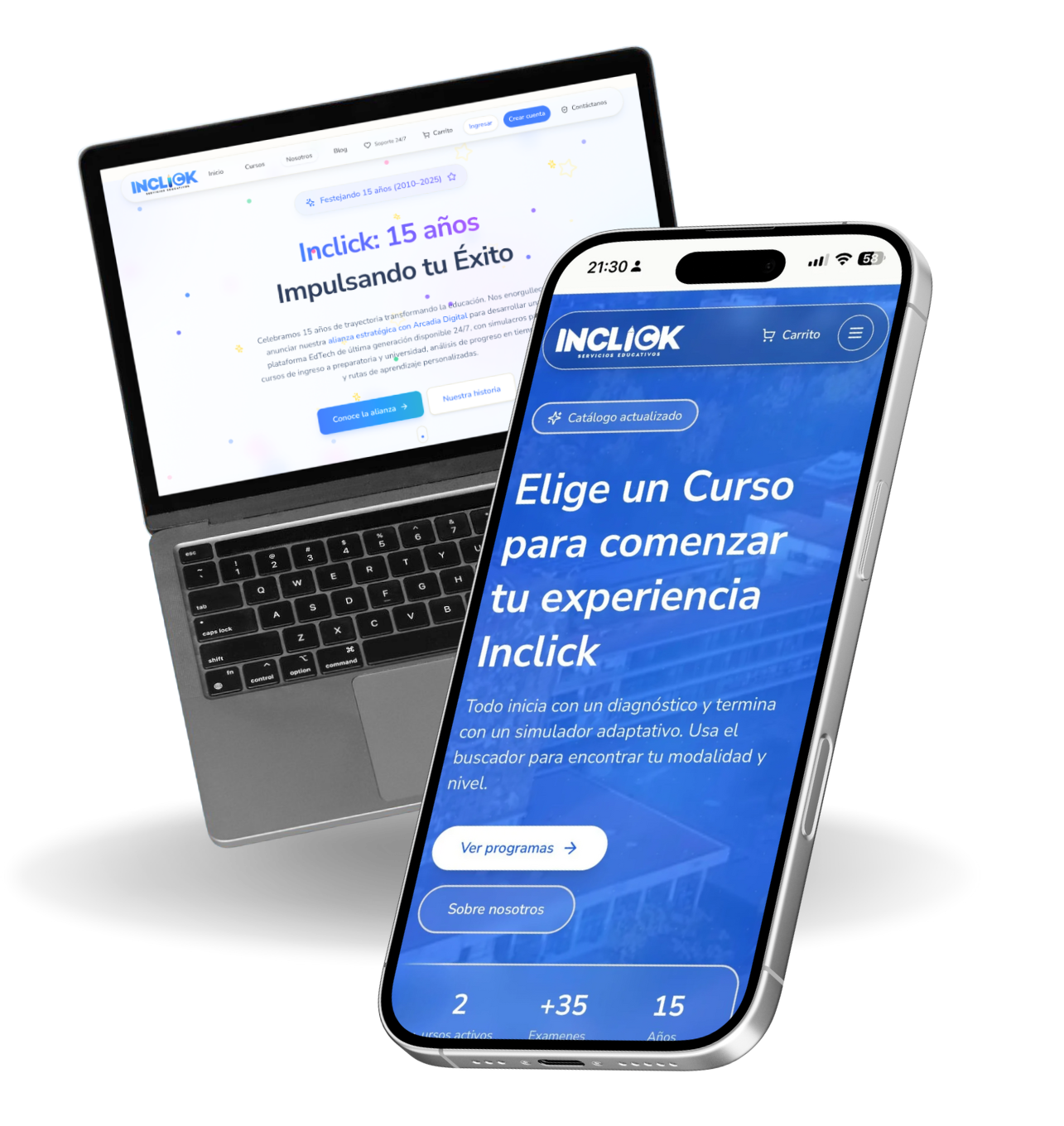 Únete a miles de estudiantes que ya están mejorando sus resultados con Inclick SE.Comienza tu prueba gratuita hoy, sin tarjeta de crédito.
